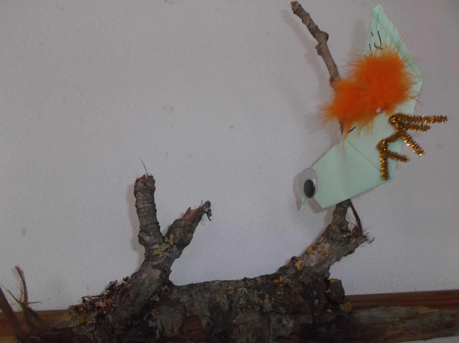 Ramo cortado com pássaro feito em ORIGAMI.