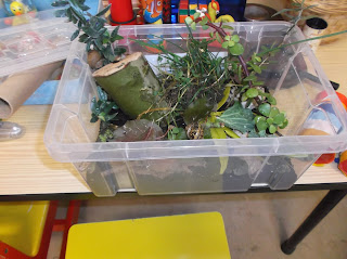 E aconteceu mesmo...a floresta invadiu o ambiente educativo. Pequenas árvores, arbustos e outras plantas vivas foram colocadas temporariamente dentro da sala de atividades, assim como alguns ramos cortados( estes podem ficar todo o ano). As crianças adoraram e toda a gente que pode ver ficou encantada com esta floresta dos afetos. Este ambiente natural proporcionou novas brincadeiras e experiências. As crianças aprendem a cuidar e a preservar os recursos naturais.