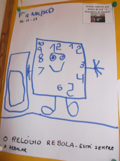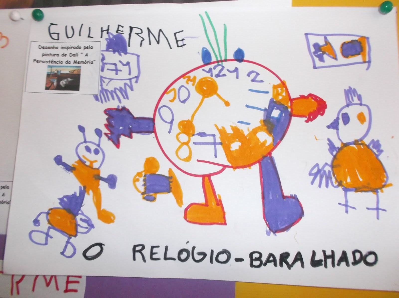 Vimos uma pintura de Salvador Dalí, “ Persistência da memória” que tem relógios. Não são relógios como os nossos! Gostamos de ver aquelas formas, as cores e a luz e quisemos criar relógios diferentes e vai daí… Mãos à Arte.